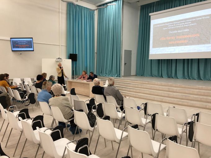 Новожилова Татьяна Васильевна, руководитель музейного комплекса школы 1150 поведала о приближающейся исторической дате, которая отмечается 11 октября — символе подвига московских ополченцев в битве за Москву. В этот день в 1941 году произошёл прорыв из Вяземского окружения у села Богородицкое. Во главе прорыва командованием Красной Армии были поставлены дивизии народного ополчения Москвы. В школе № 1150 создана экспозиция «От ополчения до гвардии», рассказывающая о создании 18-ой дивизии народного ополчения Ленинградского района Москвы. В дни битвы под Москвой дивизия входила в состав 16-ой армии Западного фронта, которой командовал К.К. Рокоссовский. Также была представлена на обозрение проектная конкурсная работа обучающихся по теме «Памяти подвига народного ополчения Москвы в битве за Москву».